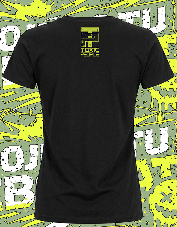 Zadní strana je čistší menší logo Toxic People mezi lopatkami, které drží celkový styl.