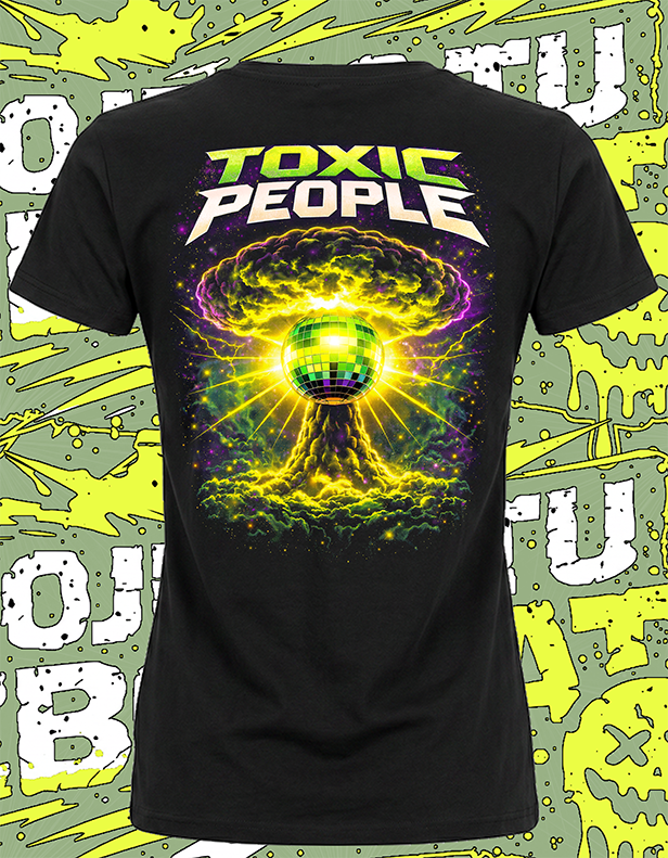 Na zádech dominuje velký výbuch ve tvaru atomového hřibu, ze kterého vyrůstá disco koule kombinace chaosu, světla a hudby. Nad tím nápis Toxic People.